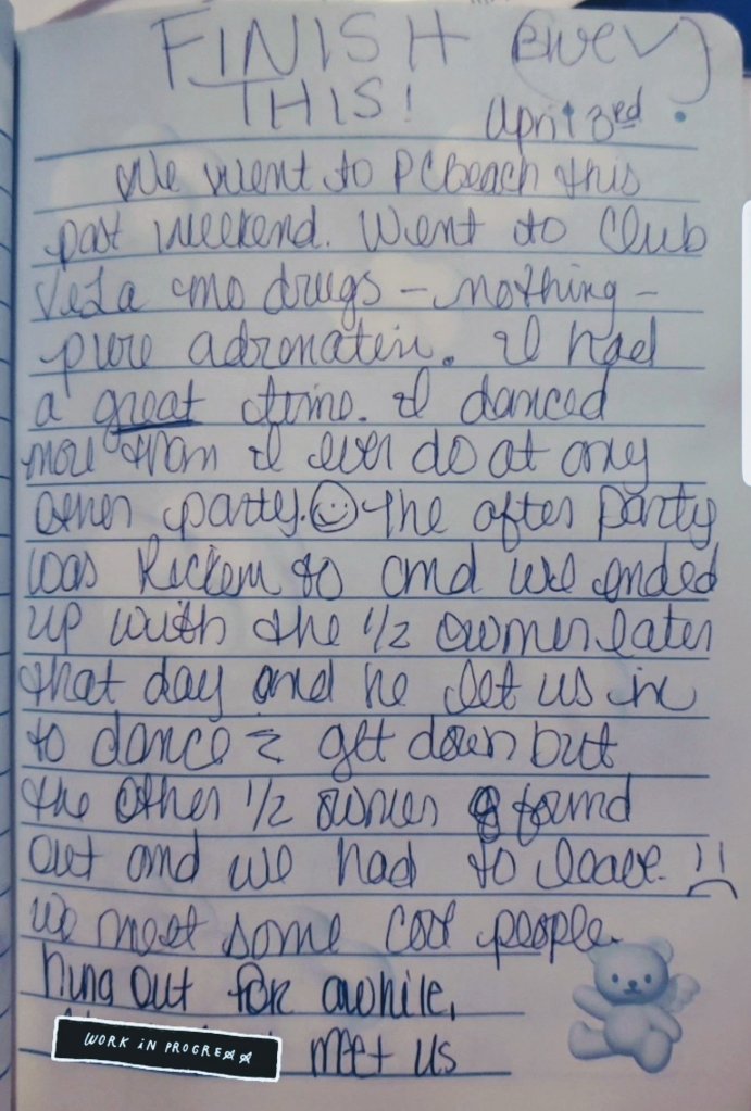 The trip to PCB back then was when you could jump in your car with a change of clothes and tooth brush and take off… and we did. It was one of the rare times we went out to the club/party sober but not bc we wanted too. We just didn’t score any there. It was always a top priority. I had to drive us back and boy it was a long drive. I can’t remember if Jackie rode down with us down there, I am assuming she did. I remember begging her to come back with us and worried for so long that something had happened to her. Remember we didn’t have cell phones at this time! I honestly don’t recall ever talking to her again after the call from Columbus asking us to come get her.