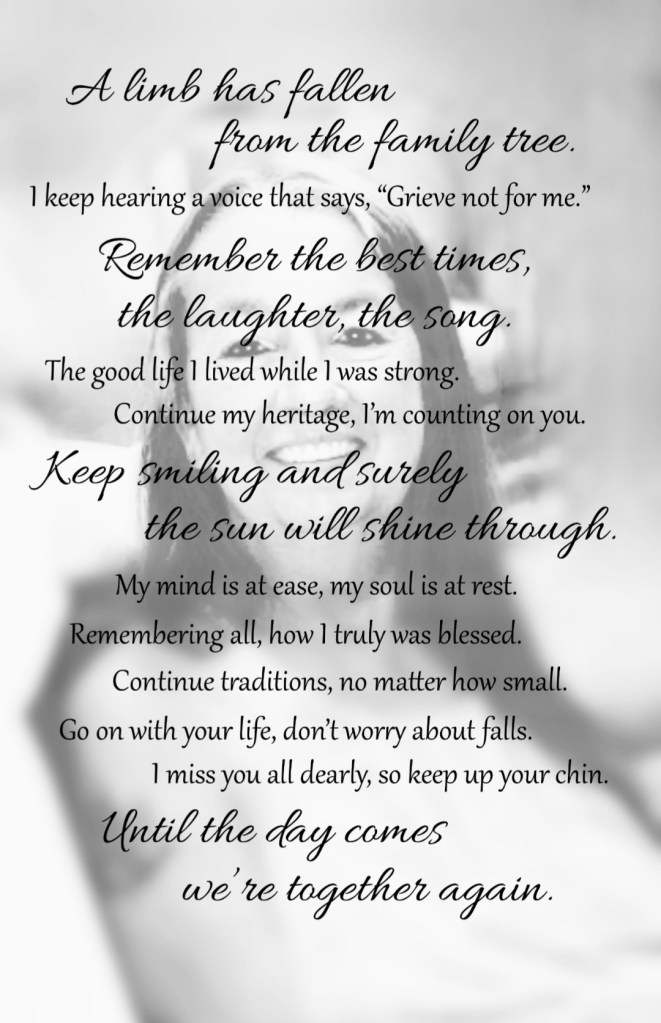 A very special friend made this for me. It truly embodies the life of my mother and all she would like for us to do in her passing.. Her strength before she got sick, how we should do life with her gone with traditions.. My mom loved traditions and starting new ones.